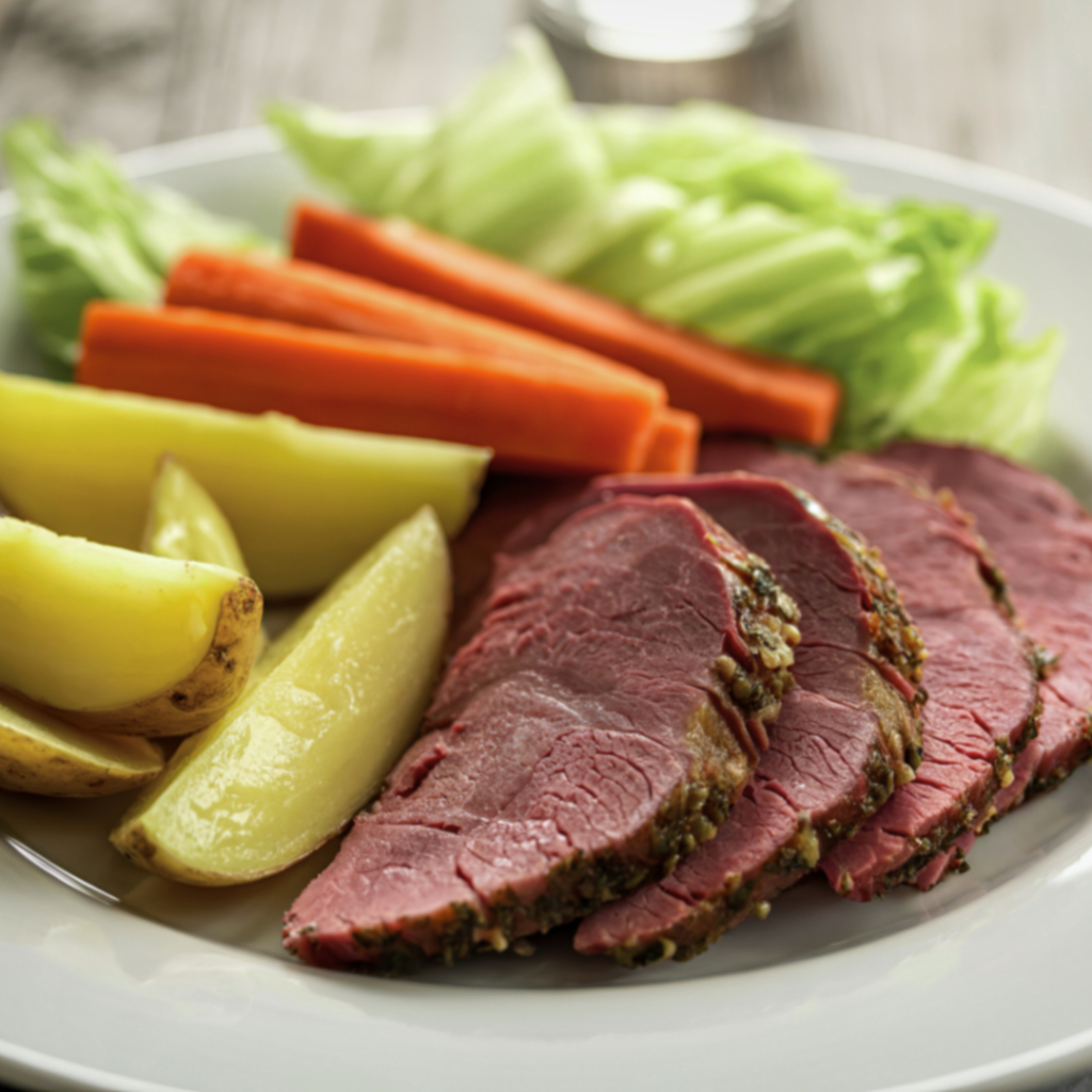 Corned Beef, Cabbage, Carrots, Potatoes, and Pie