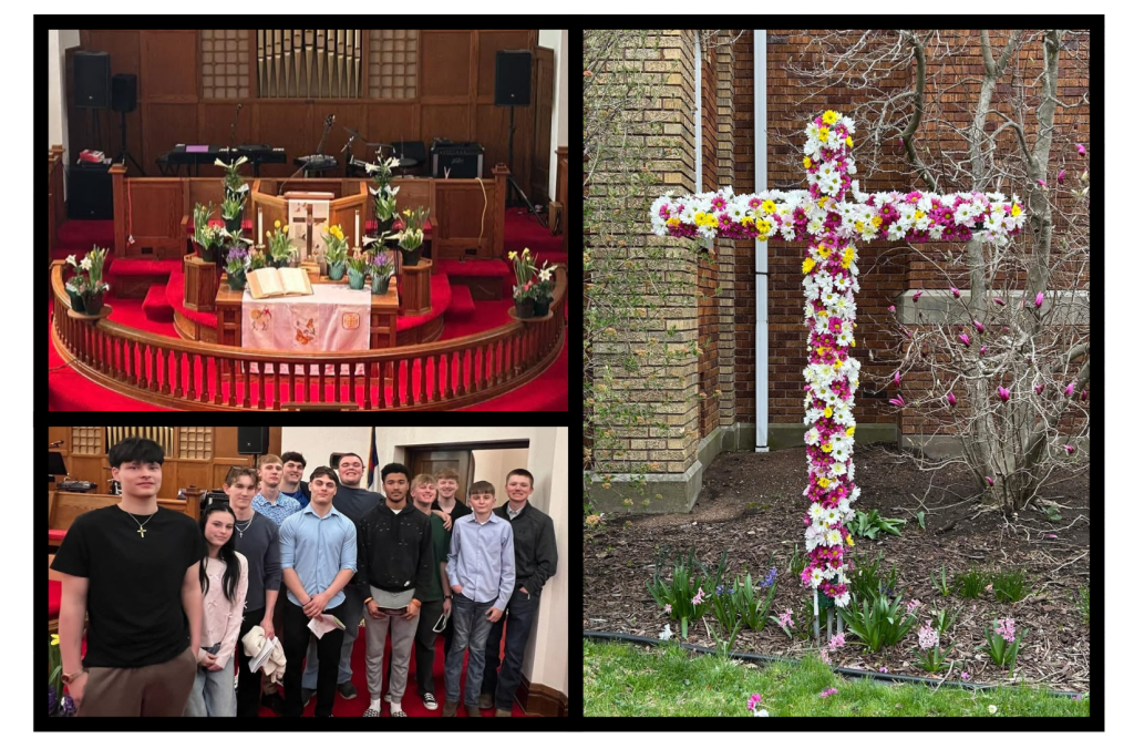 Pastor Travis shared a wonderful message of Jesus’ resurrection. At the end of the service Brad played music while the congregation joined to decorate the cross with beautiful flowers provided by the worship committee.